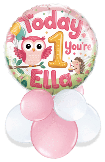 Pink Owl First Birthday Air Filled Display